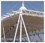 精選優質進口大品牌膜結構原材料,具有拉力強度高,承載力大,使用壽命 長,每平方承載力可以達300-500kg,數人站立同一位置都不會有任何變形, 經由專家測算,可抗風12級以上,抗震7級以上。了解詳細>>